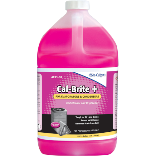 Cal-Brite Plus technology provides a safer alternative with excellent performance. The synergy of its acidic-based formulation achieves foaming, brightening and cleaning, but without the dangers that are typical to high concentrations of hydrofluoric acid. Because of its low odor and increased safety, Cal-Brite Plus can be used on indoor coils.