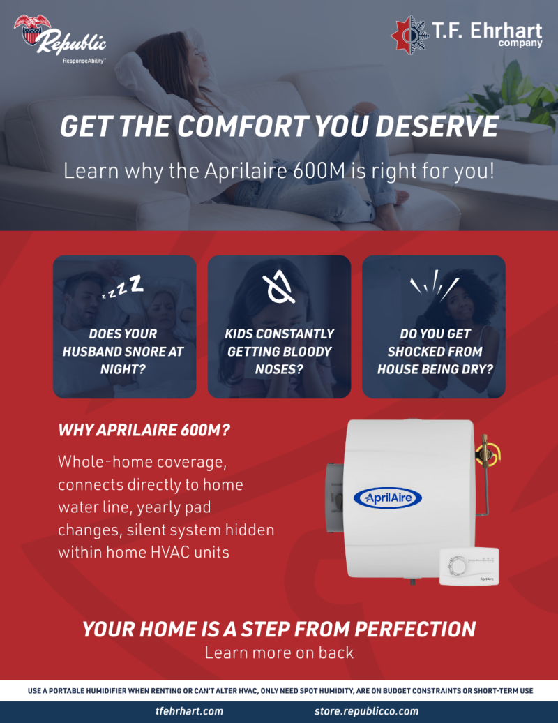 Breathe easier and stay cozy all season long. The Aprilaire 600M wholeāhome humidifier delivers up to 17 gallons of moisture per day, covering h ...show more